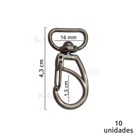 Detalhes: Mosquetão 16mm níquel 1166 aberto com 10 unidades