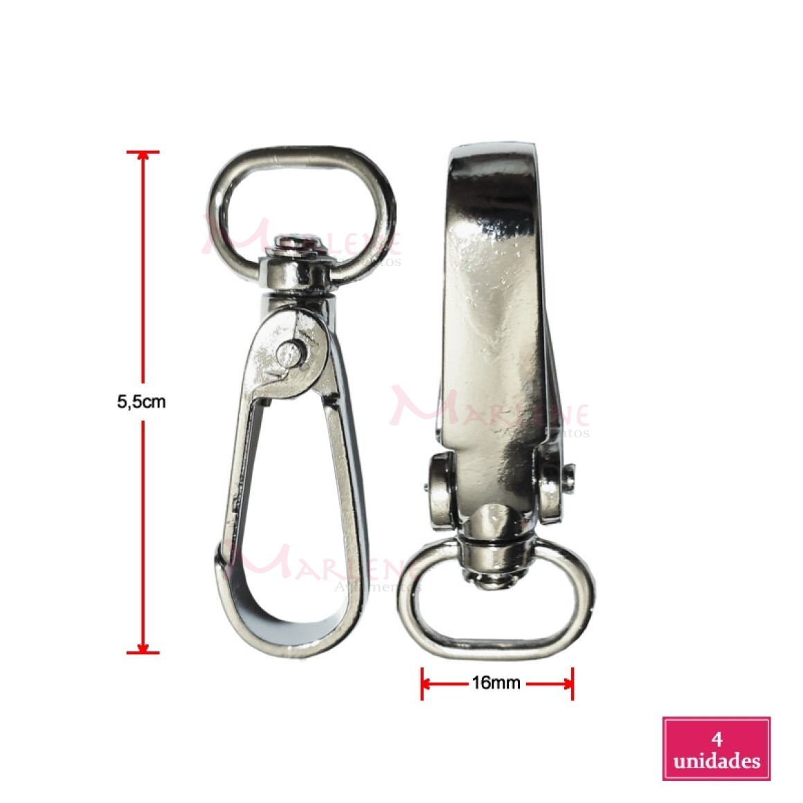 Detalhes: Mosquetão 16mm níquel chapado com 4 unidades no pacote, sem gatilho.
