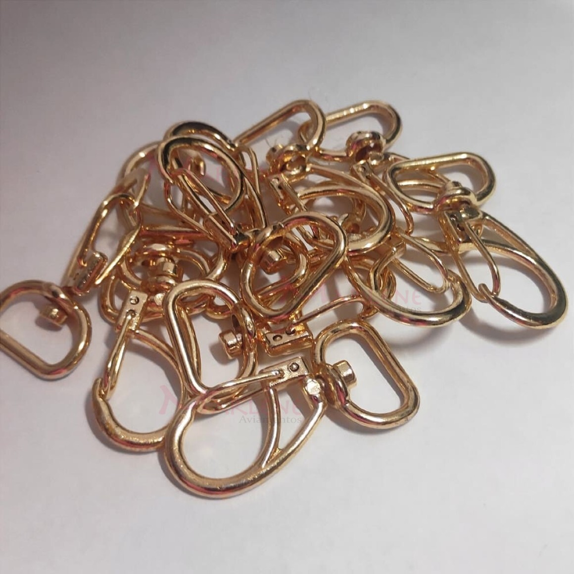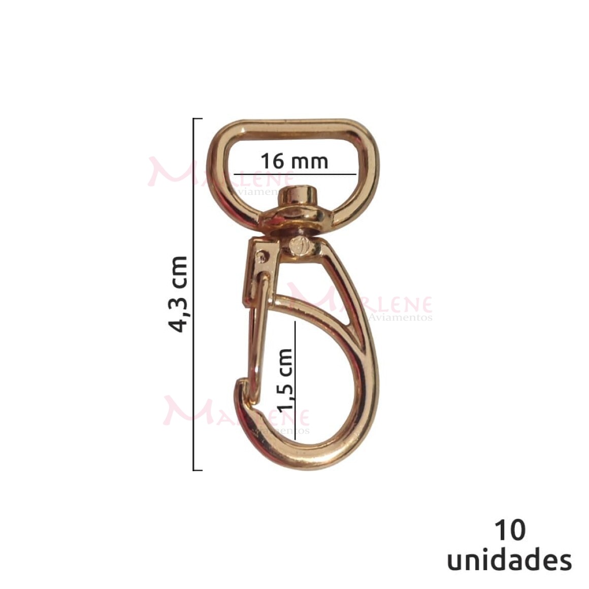 Detalhes: Mosquetão 16mm ouro 1166 aberto com 10 unidades