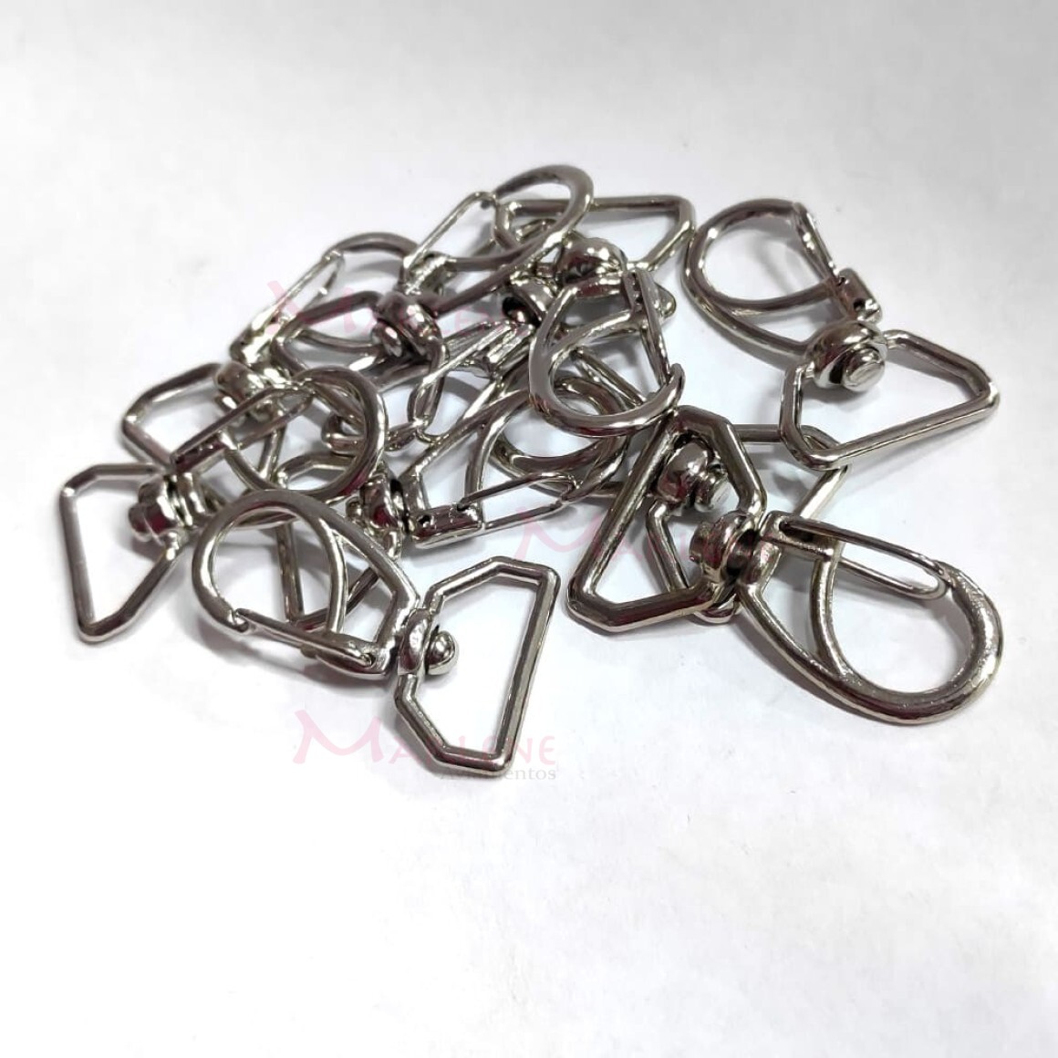 Detalhes: Mosquetão 20mm níquel 1166 aberto com 10 unidades
