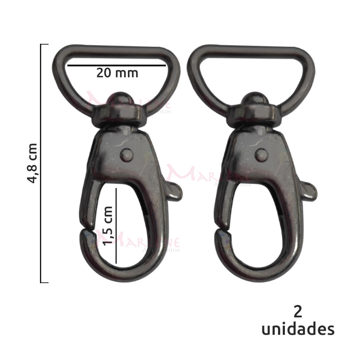 Detalhes: Mosquetão 20mm grafite gordo com gatilho 6004 com 2 unidades no pacote.