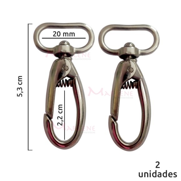 Detalhes: Mosquetão 20mm níquel gordo 1057 sem gatilho com 2 unidades