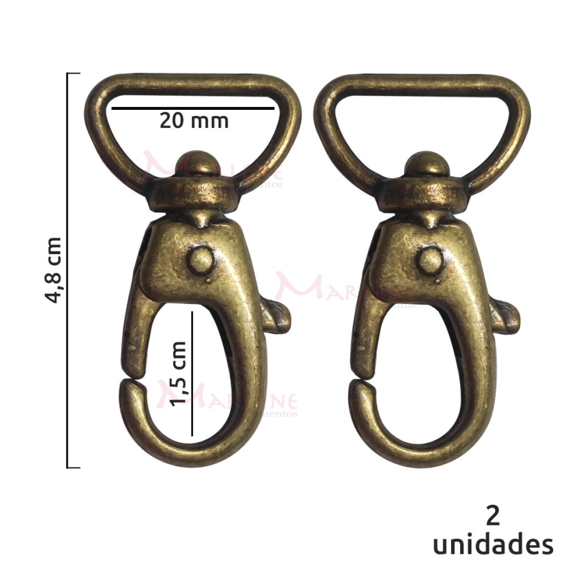 Detalhes: Mosquetão 20mm ouro velho gordo com gatilho 2 unidades no pacote