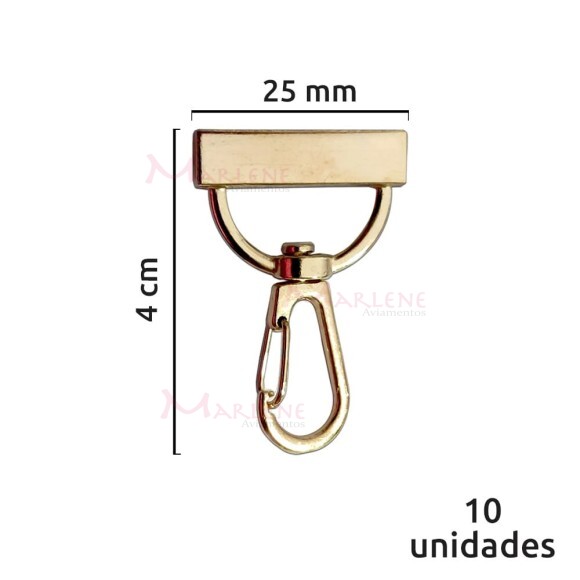 Detalhes: Mosquetão 25mm com encaixe ouro 10 unidades