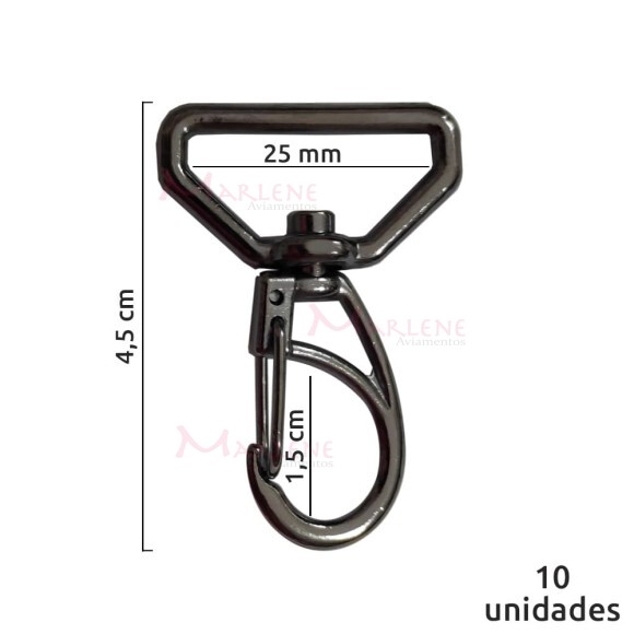 Detalhes: Mosquetão 25mm grafite 1166 aberto com 10 unidades