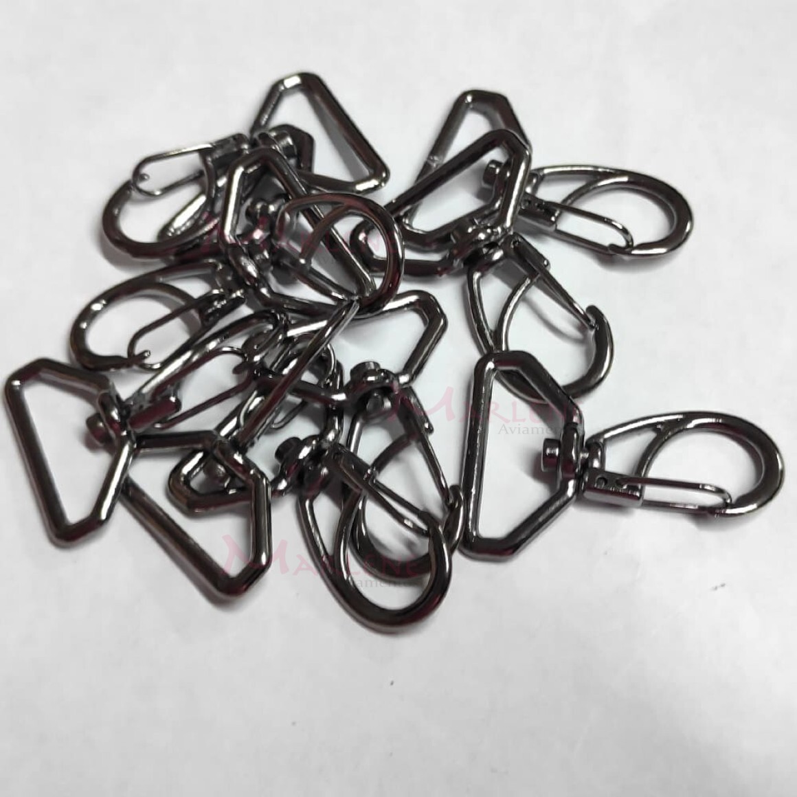 Uso: Mosquetão usado em bolsas, mochilas, acessórios decorativos, chaveiros, entre outros.
