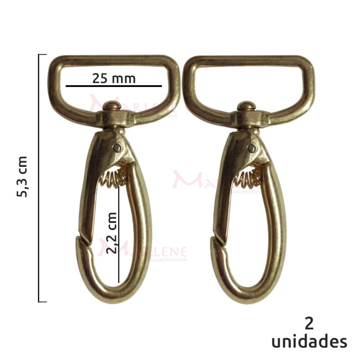 Detalhes: Mosquetão 25mm latonado gordo 1057 sem gatilho com 2 unidades