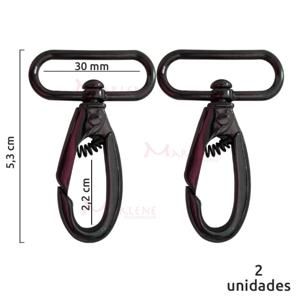 Detalhes: Mosquetão 30mm grafite gordo 1057 sem gatilho com 2 unidades
