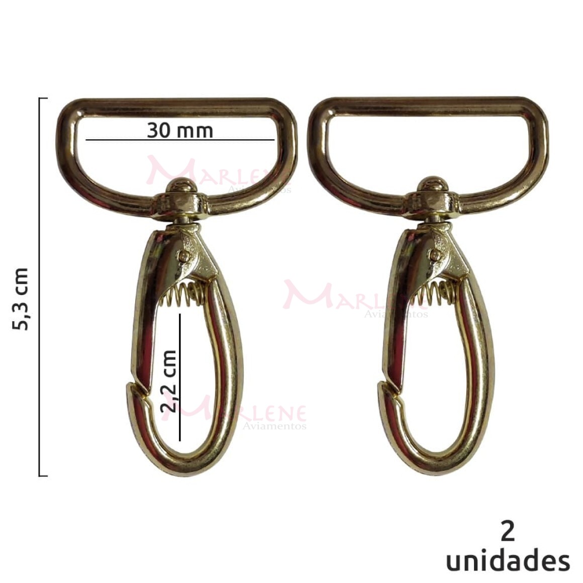 Detalhes: Mosquetão 30mm latonado gordo 1057 sem gatilho com 2 unidades