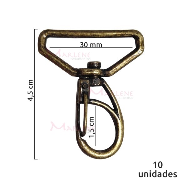 Detalhes: Mosquetão 30mm ouro velho 1166 aberto com 10 unidades