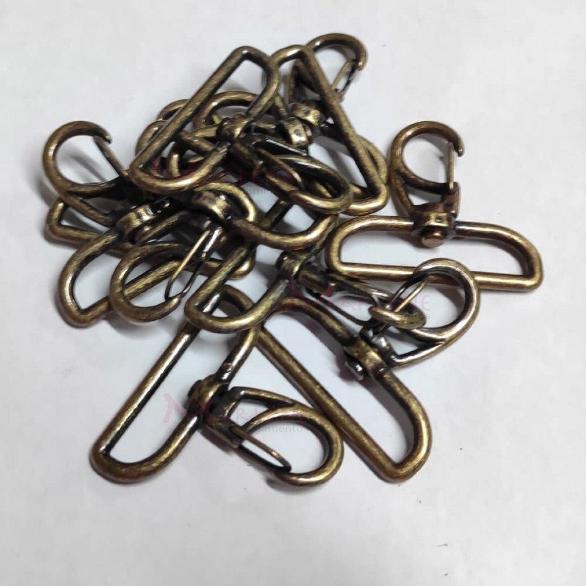 Detalhes: Mosquetão 40mm ouro velho aberto com 10 unidades no pacote 1166.