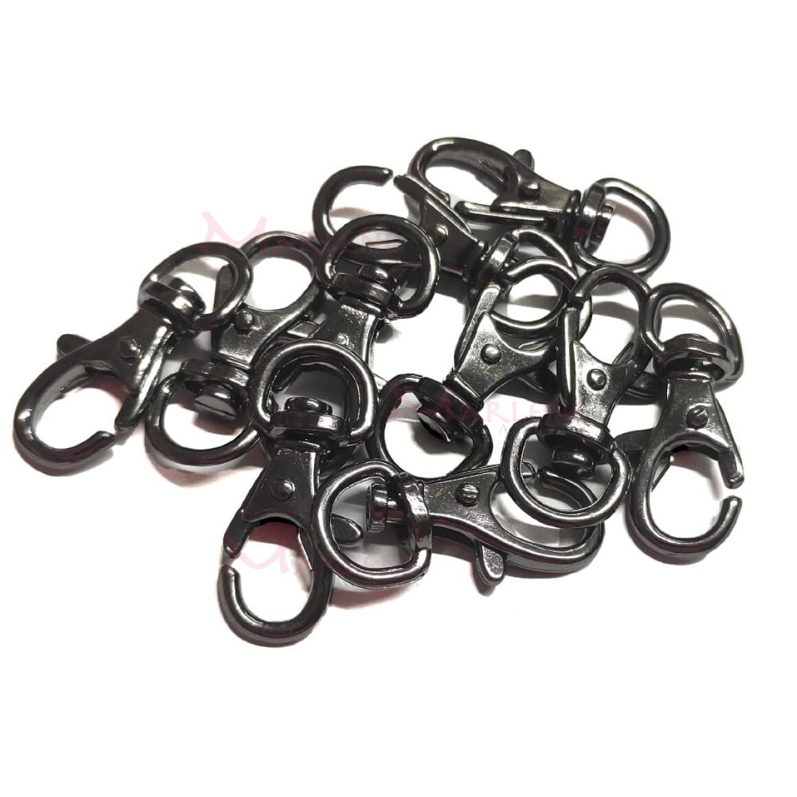 Uso: Mosquetão usado em bolsas, mochilas, acessórios decorativos, chaveiros, entre outros. Possui uma alavanca para auxiliar na abertura.