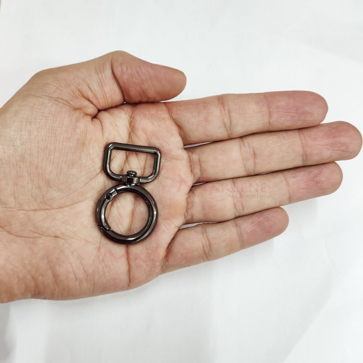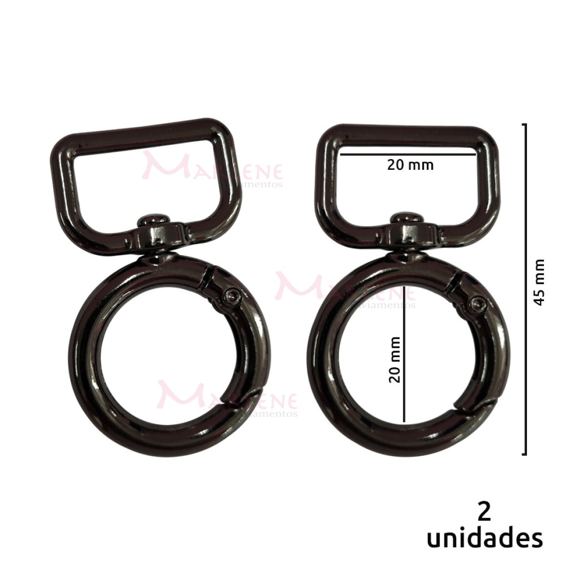 Mosquetão com argola articulada 20mm grafite com 2 unidades