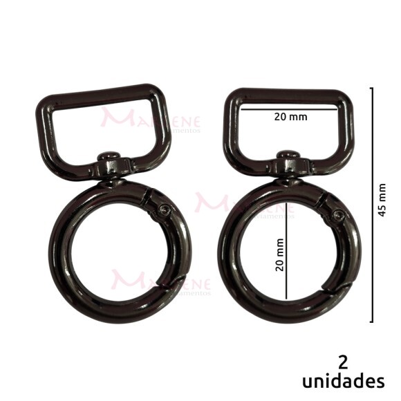 Detalhes: Mosquetão com argola articulada 20mm grafite com 2 unidades