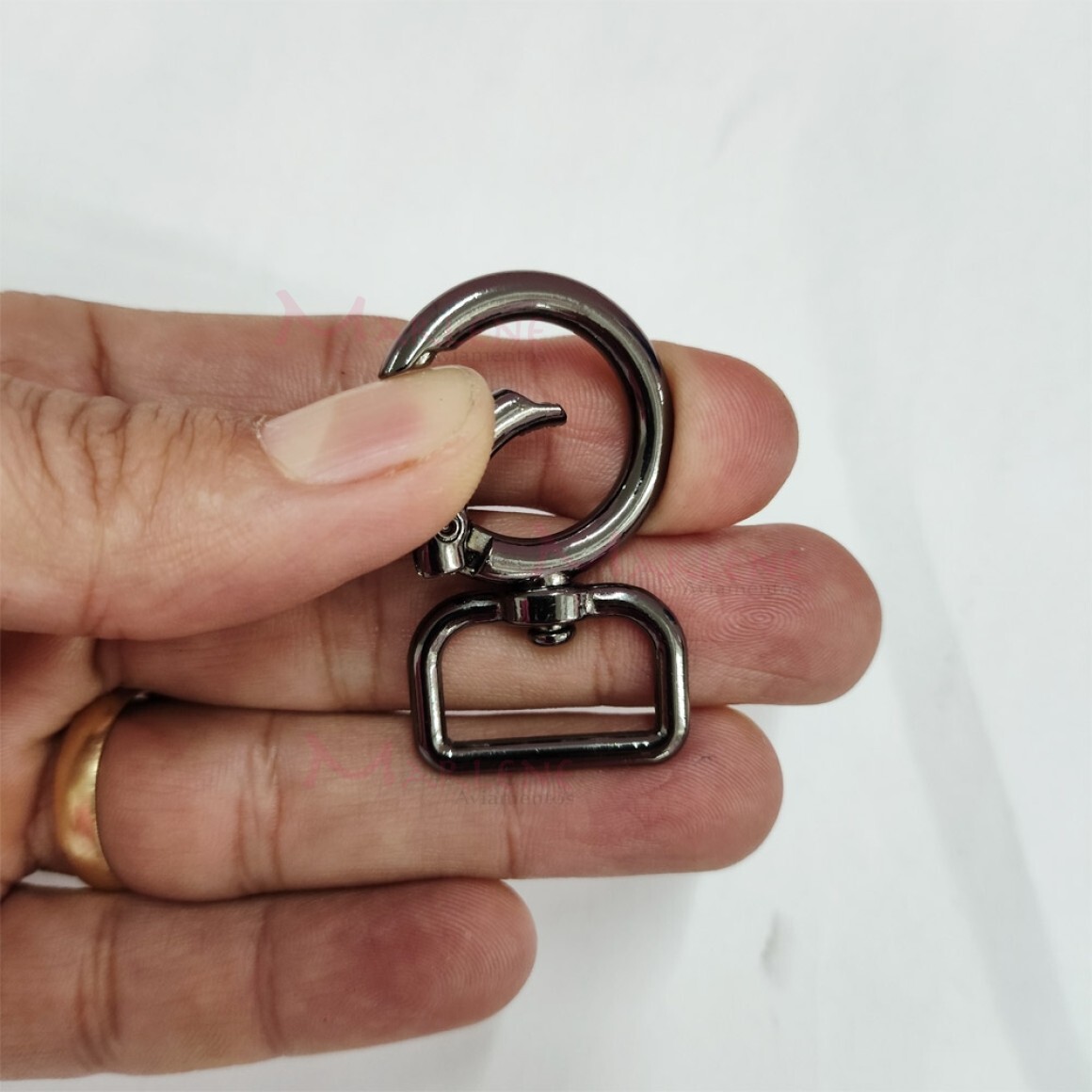 Uso: Mosquetão com argola articulada de 20mm usado em alças de bolsas, mochilas, acessórios decorativos. Perfeito para alças de couro sintético, alças de corrente, alças de cadarço de algodão ou poliéster, entre outros. Além de ficar super linda, deixa a remoção da alça super fácil.