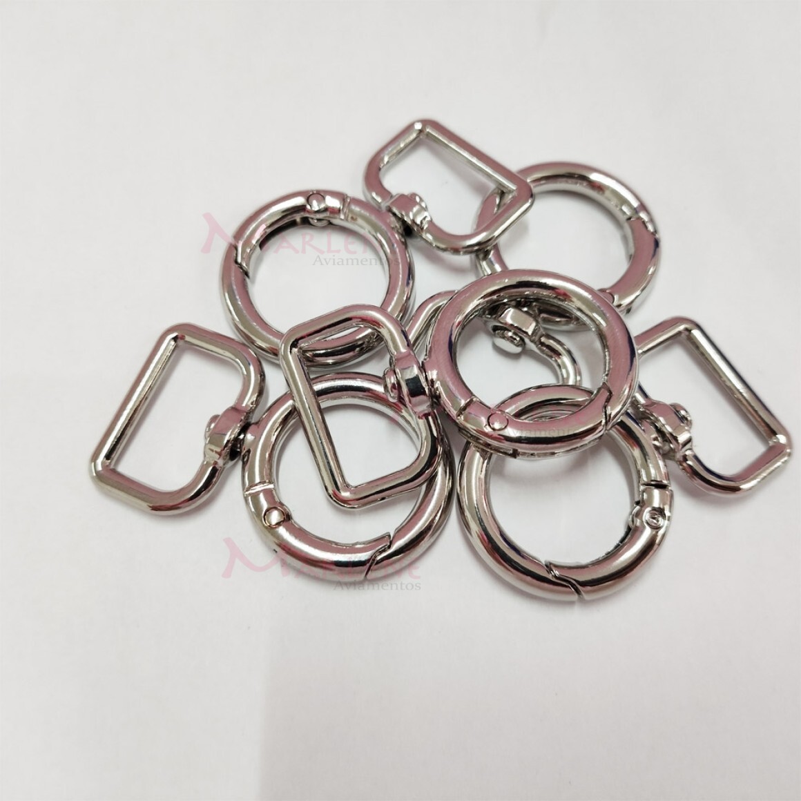 Detalhes: Mosquetão com argola articulada 20mm níquel com 10 unidades
