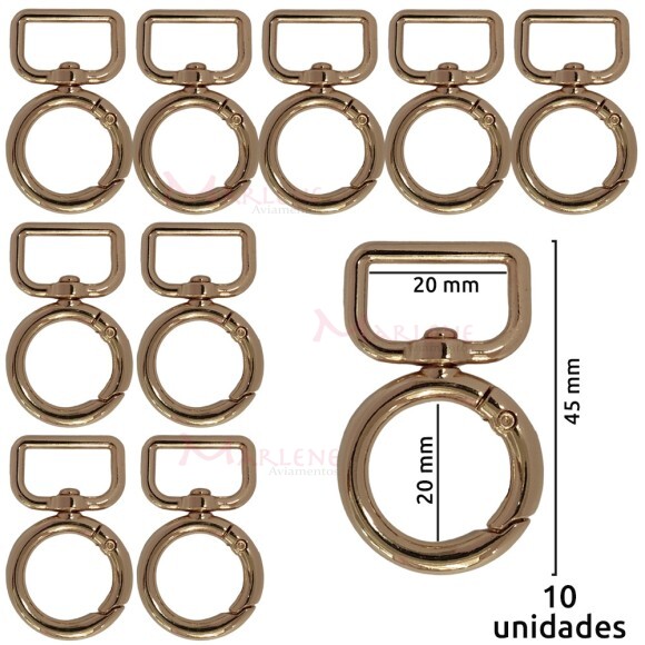 Detalhes: Mosquetão com argola articulada 20mm ouro com 10 unidades