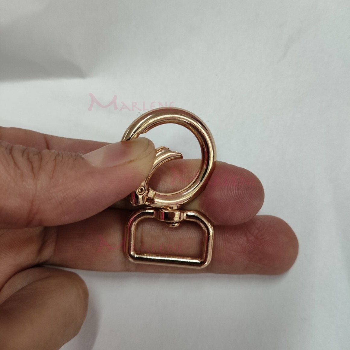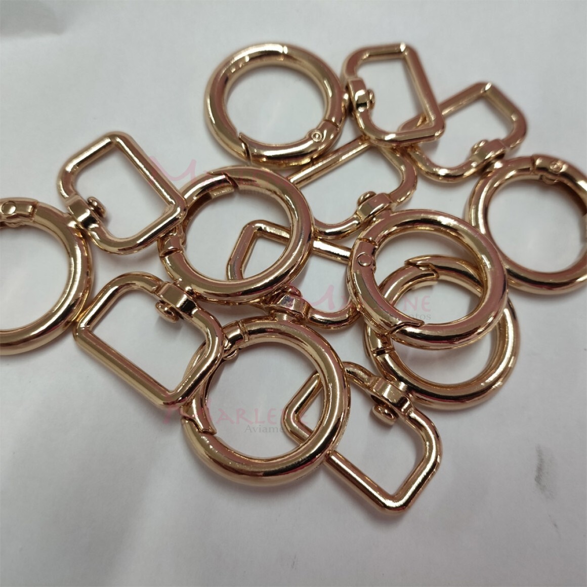 Uso: Mosquetão com argola articulada de 20mm usado em alças de bolsas, mochilas, acessórios decorativos. Perfeito para alças de couro sintético, alças de corrente, alças de cadarço de algodão ou poliéster, entre outros. Além de ficar super linda, deixa a remoção da alça super fácil.