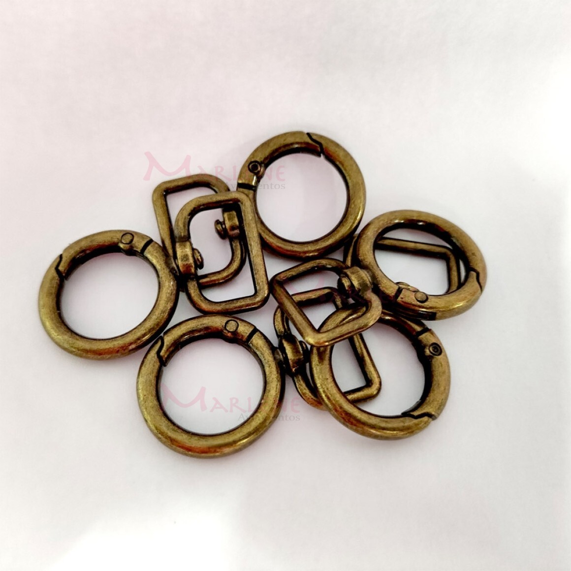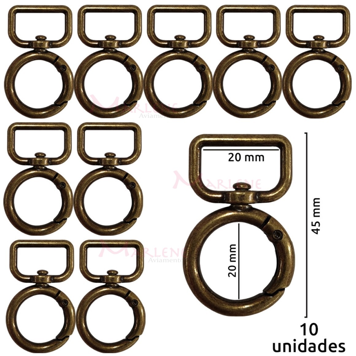 Detalhes: Mosquetão com argola articulada 20mm ouro velho com 10 unidades
