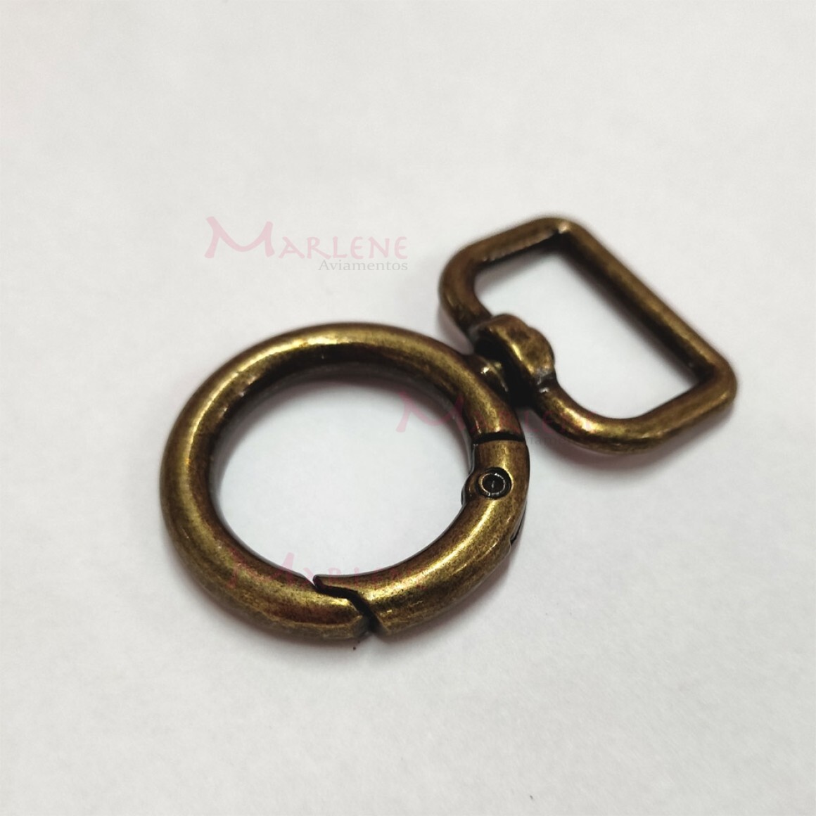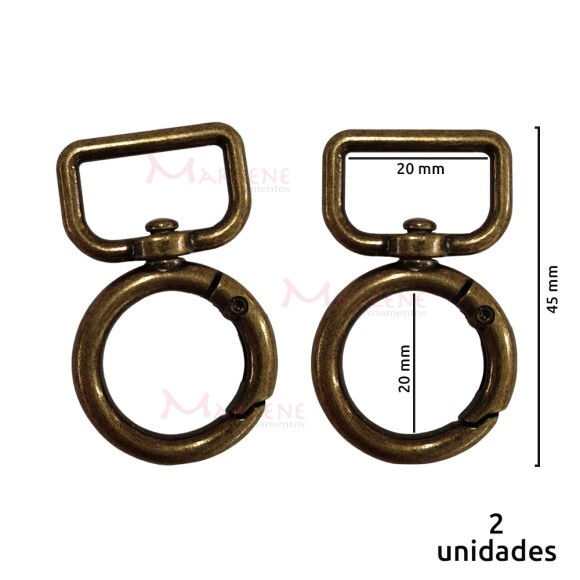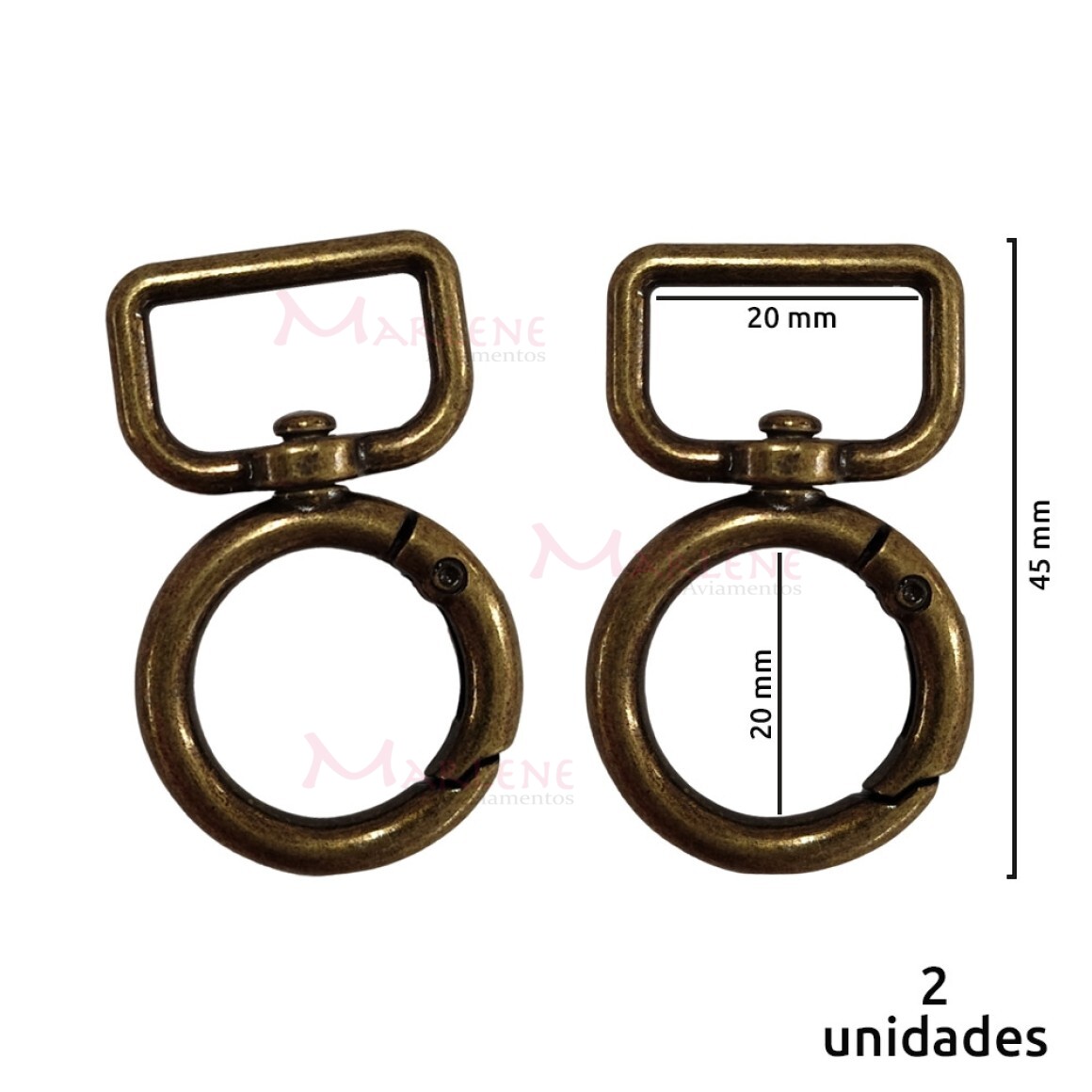 Detalhes: Mosquetão com argola articulada 20mm ouro velho com 2 unidades