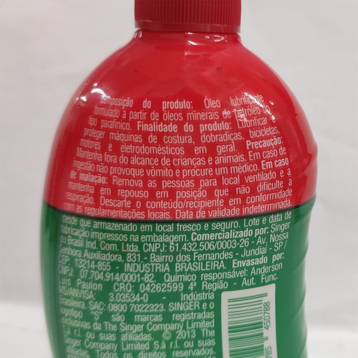Uso: O Óleo Singer multiuso é usado para lubrificar máquinas de costura industrial ou doméstica e para outros itens como bicicletas, rolamentos, dobradiças, motores e eletrodomésticos em geral. Proporciona proteção contra corrosão, ferrugem e desgate.