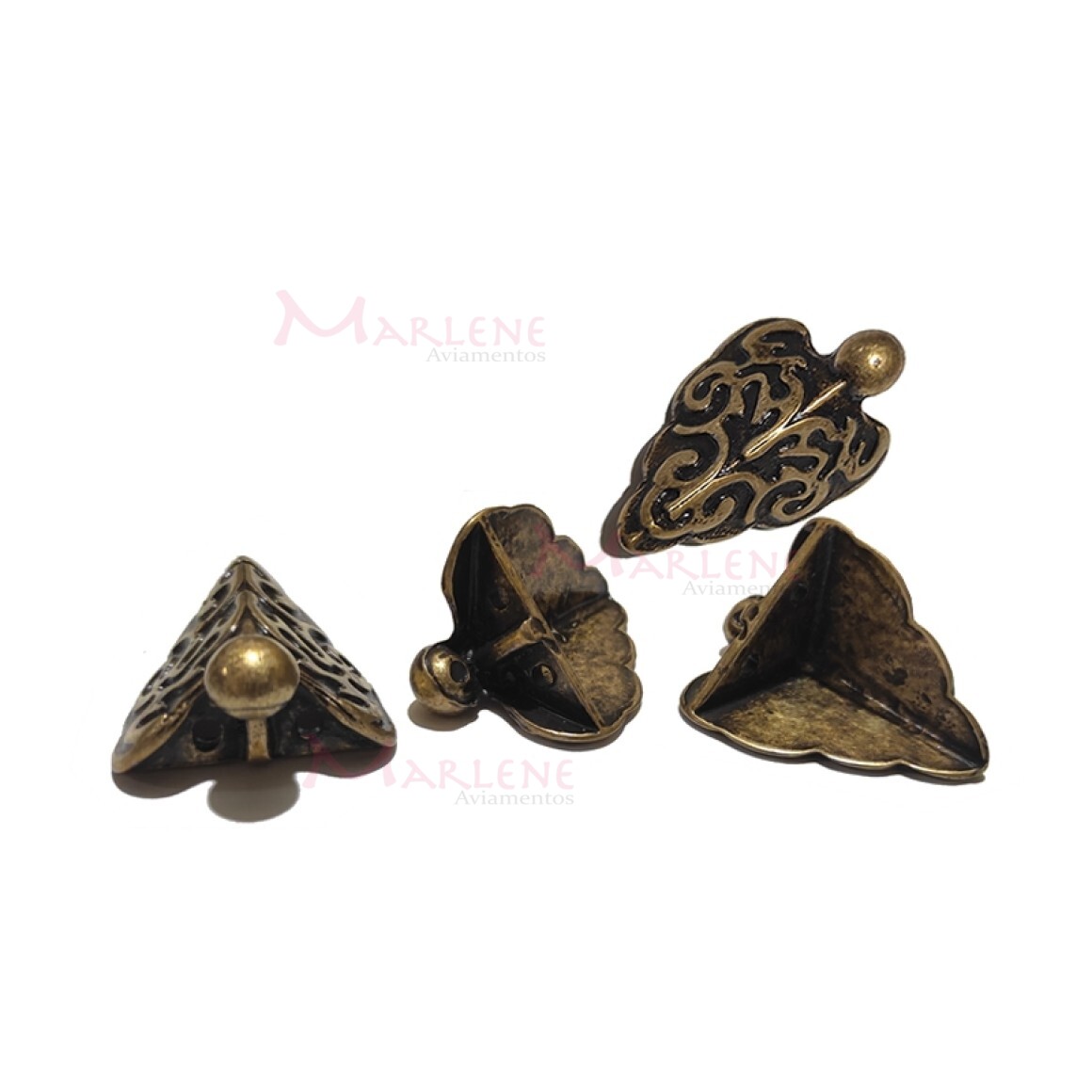 Detalhes: Pé de metal cantoneira grande trabalhado 4 unidades ouro velho