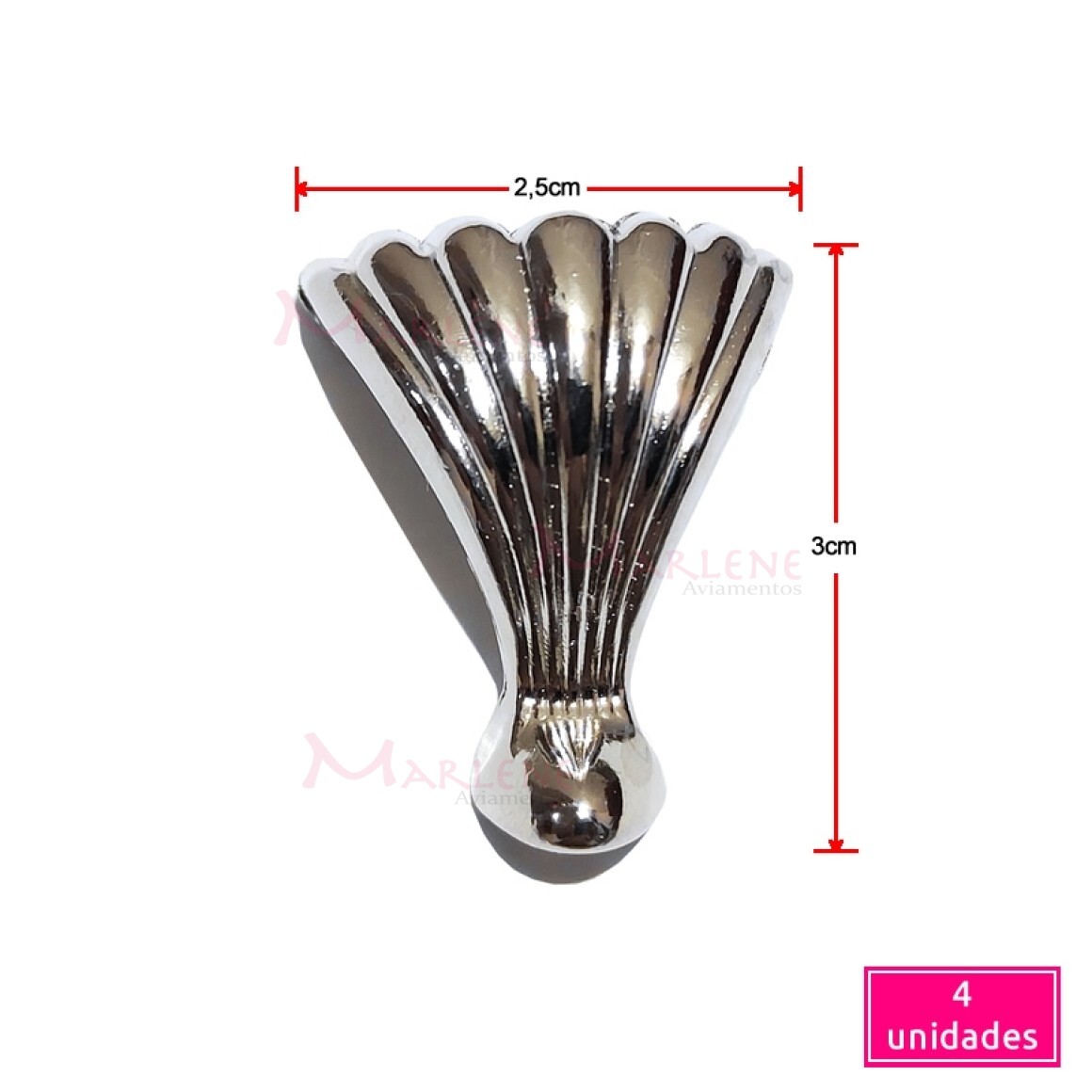 Detalhes: Pé de metal concha grande 4 unidades níquel 15278