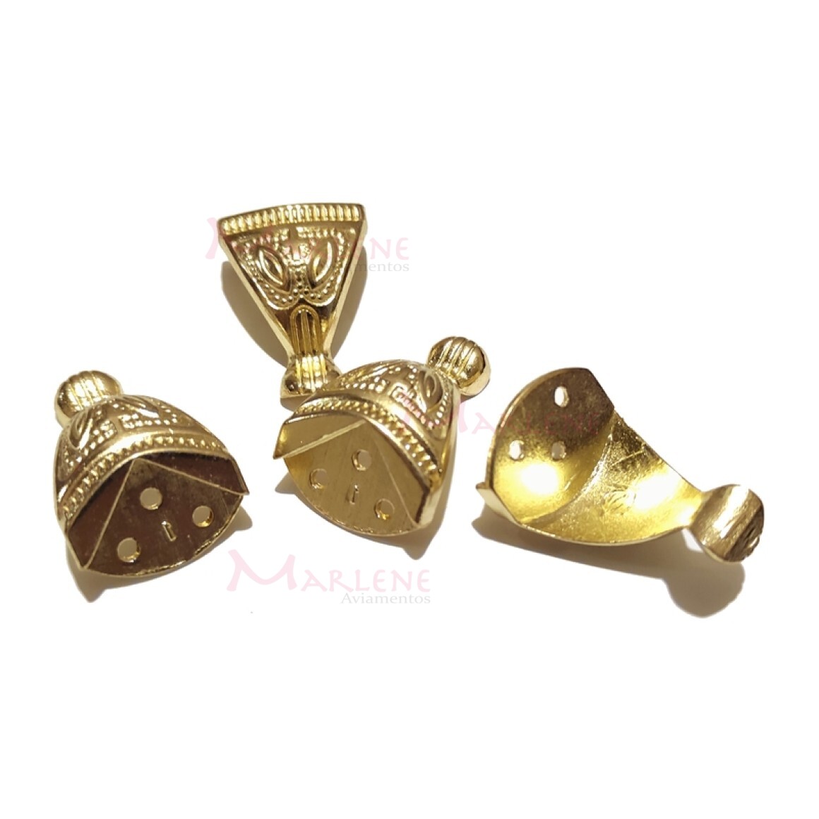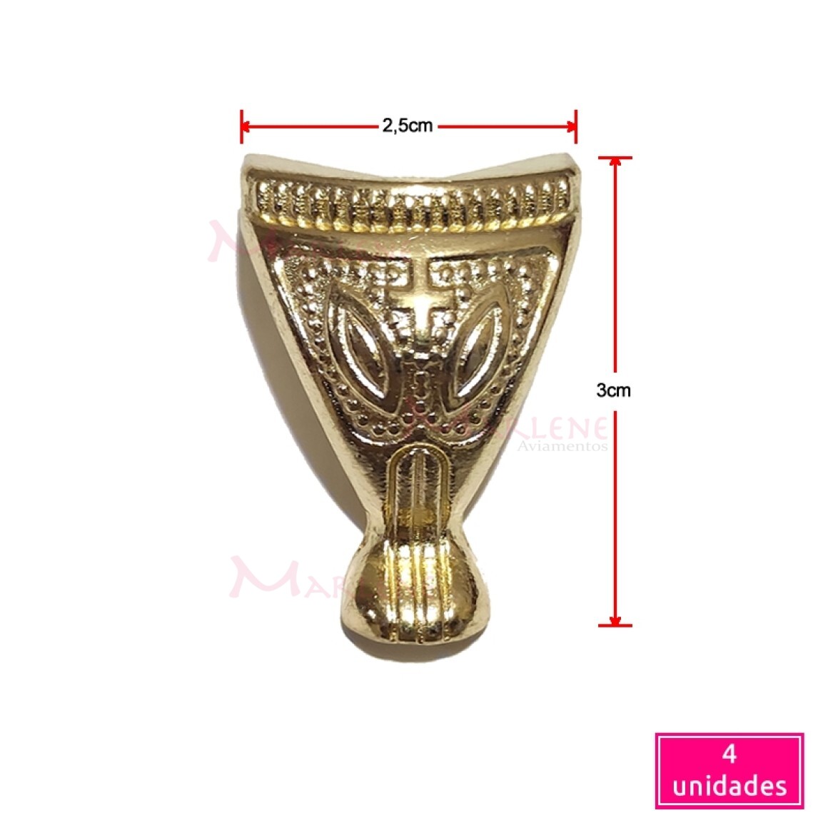 Detalhes: Pé de metal egípcio grande 4 unidades latonado 1382G