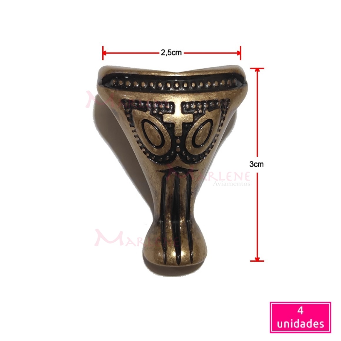 Detalhes: Pé de metal egípcio grande 4 unidades ouro velho 1382G