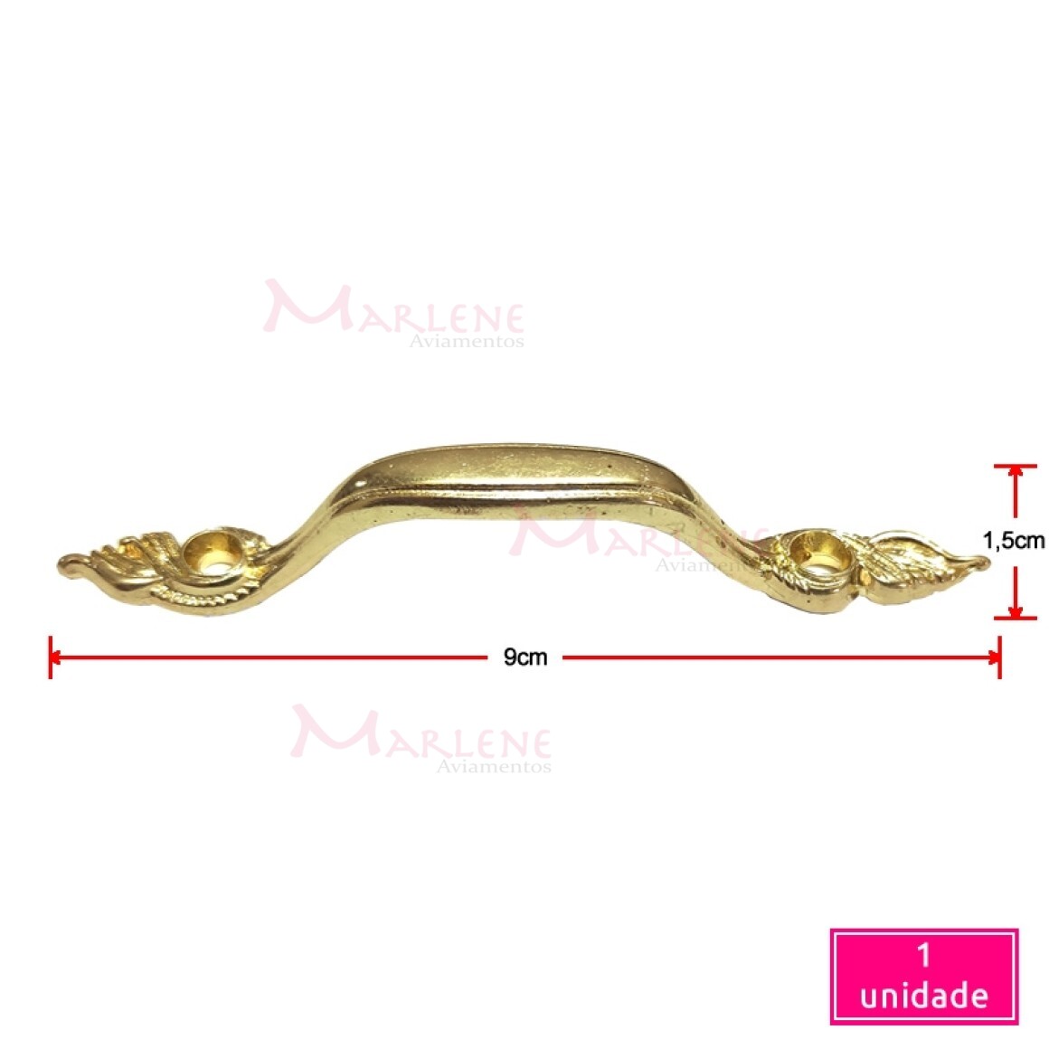 Detalhes: Puxador trabalhado 9cm latonado 1973 com 1 unidade