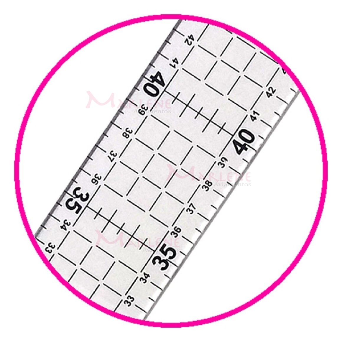 Uso: Usado paara trabalhos em patchwork, por exemplo, tecidos, moldes e retalhos quadrículados pequenos. Sua transparência facilita na hora de trabalhar com tecidos coloridos. Possui marcaçao em cm e internamente quadriculados de 1cm².