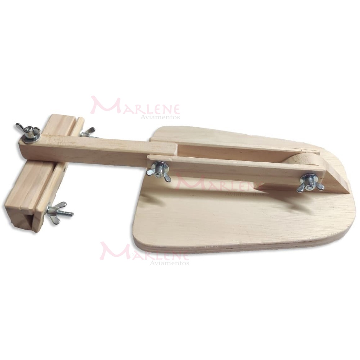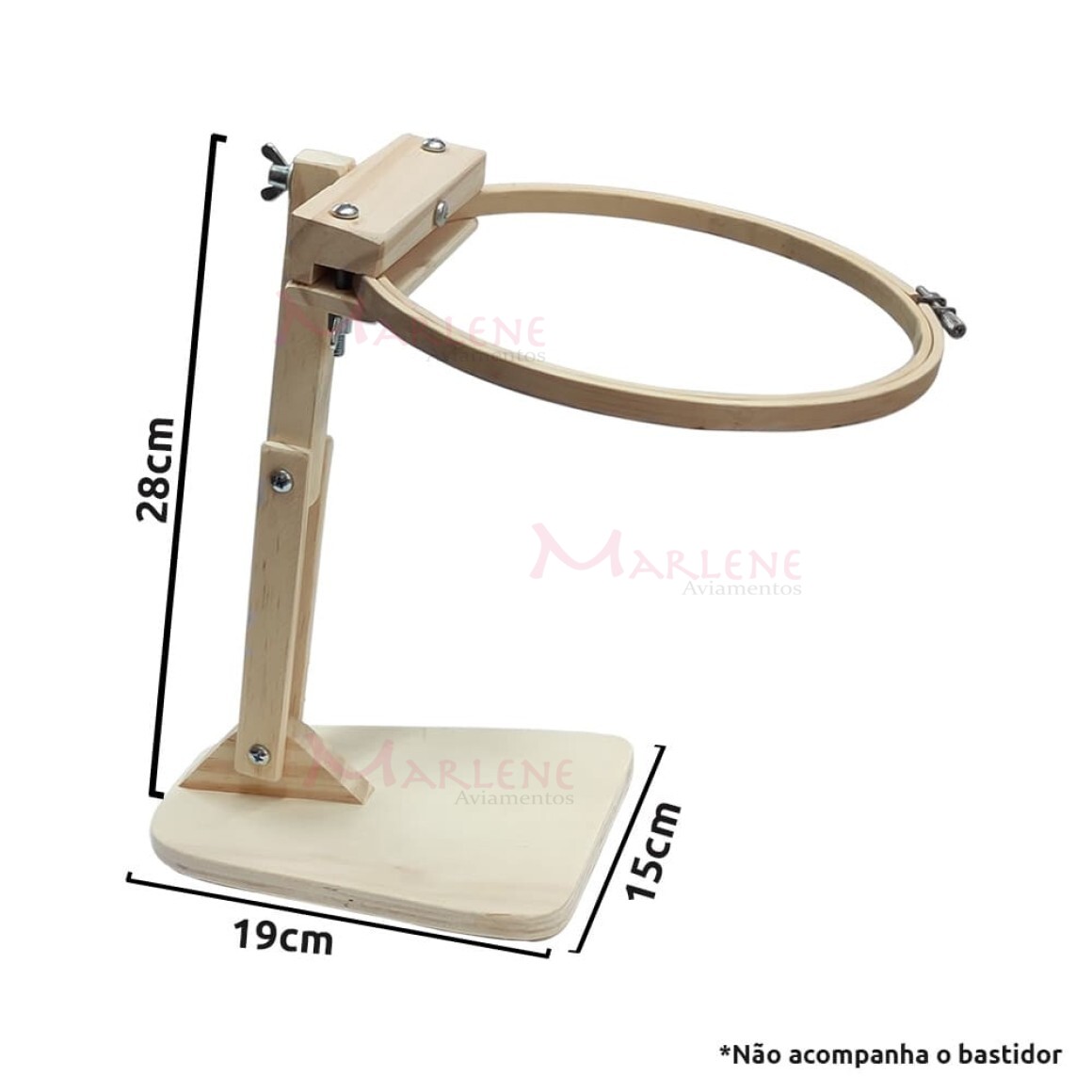 Uso: Usado para deixar o bastidor suspenso e liberando as mãos para uso exclusivo no bordado, facilitando a realização dos trabalhos. A altura pode ser ajustada mexendo na inclinação do mesmo, deixando na posição que você achar mais confortável.