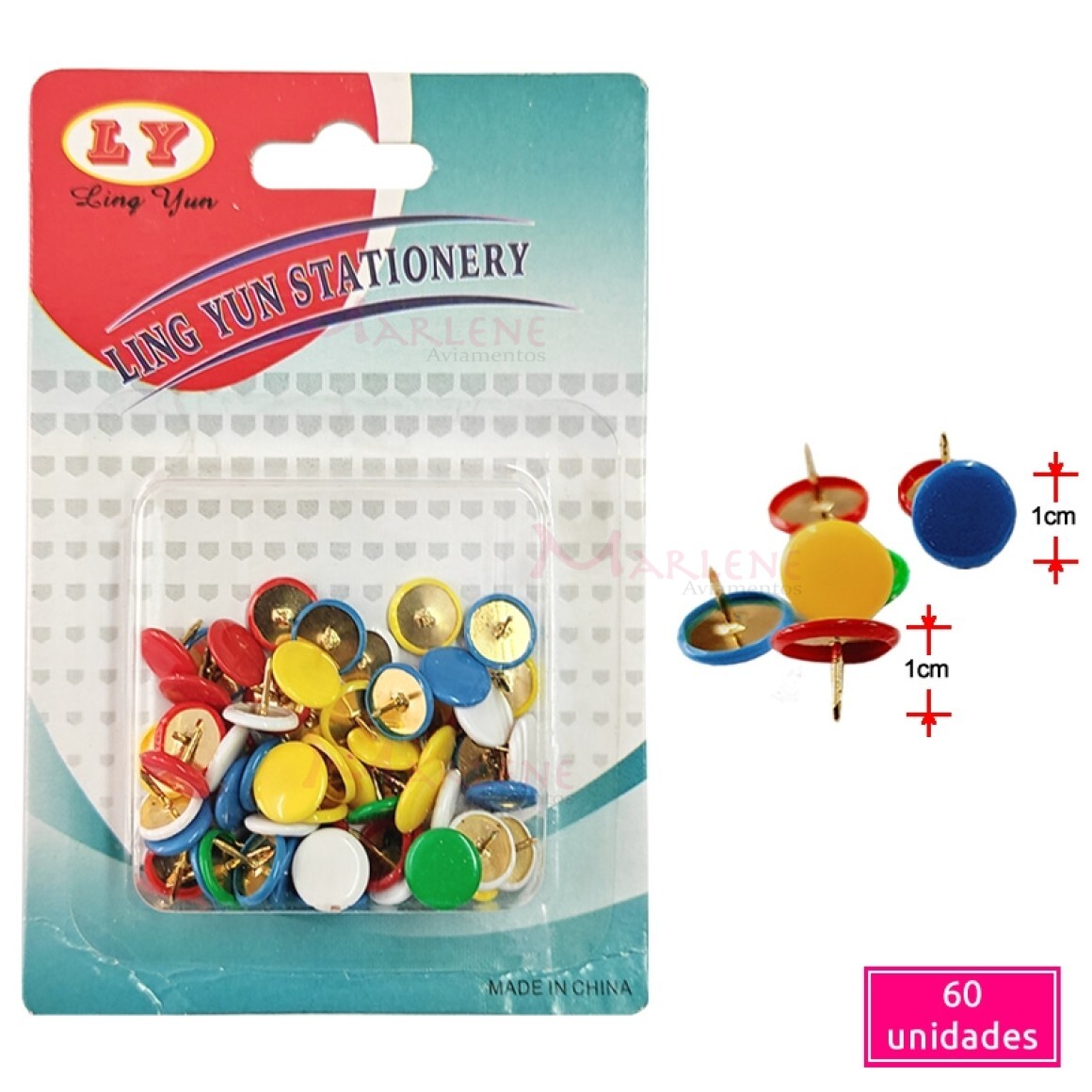 Uso: Utilizados para fixação de materias de decoração, papeis em quadros de avisos, entre outras utilidades.