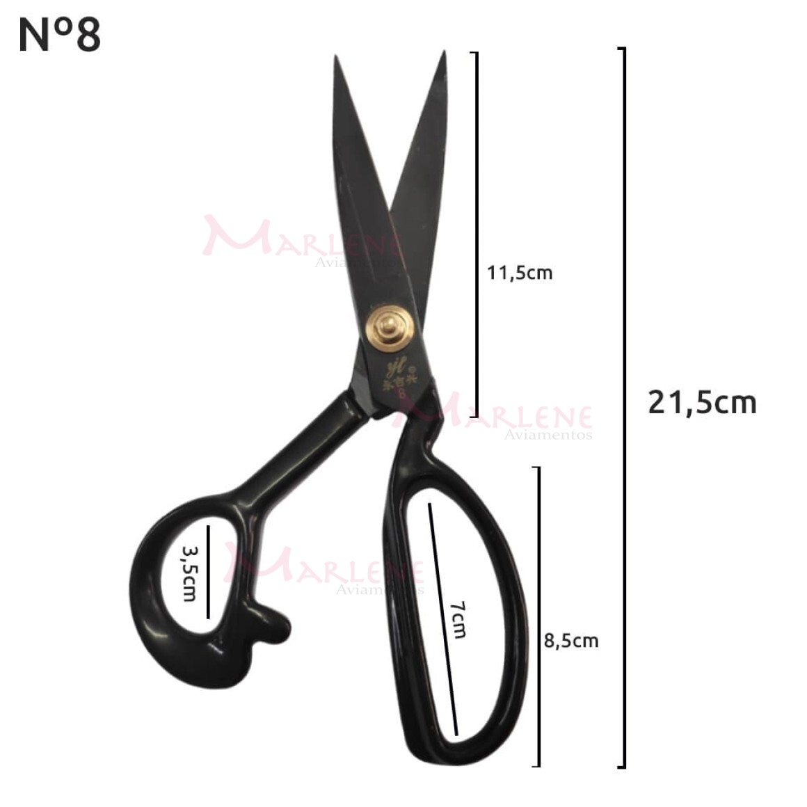 Detalhes: Tesoura de alfaiate nº8 em aço e cabo emborrachado