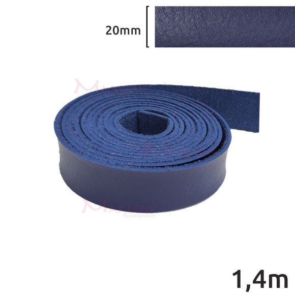 Detalhes: Tira de couro sintético 20mm azul royal com 1,4m