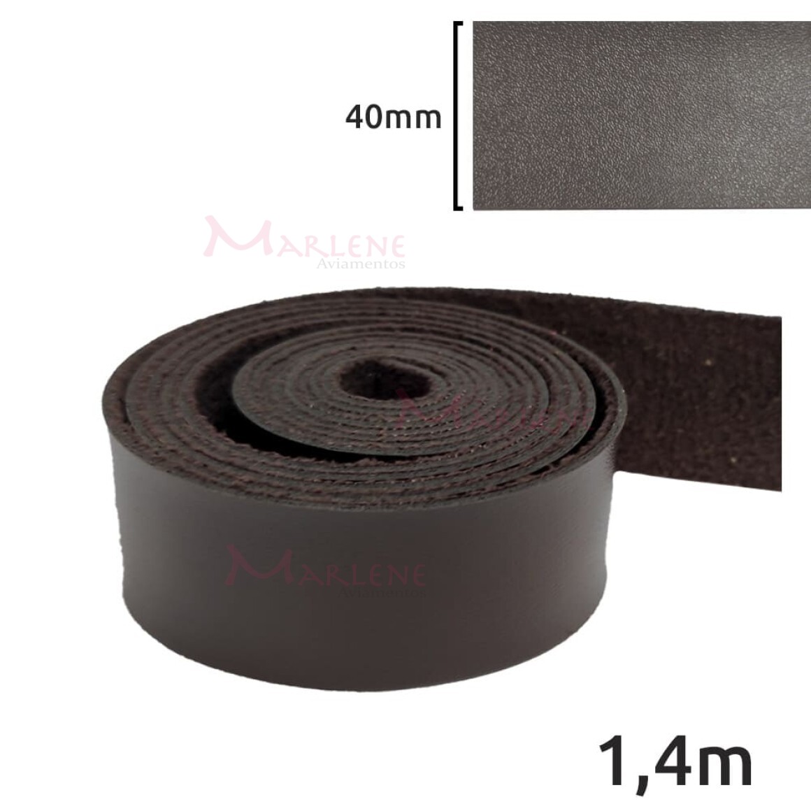 Detalhes: Tira de couro sintético 40mm marrom café com 1,4m