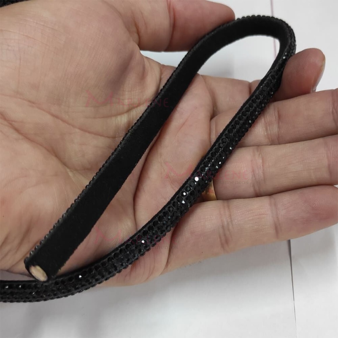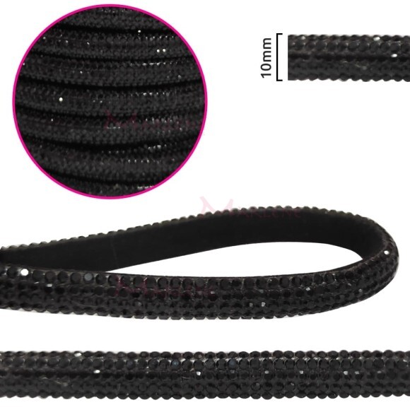 Detalhes: Tubo de strass (strass meia cana) 10mm preto GHB-004-TZ por metro