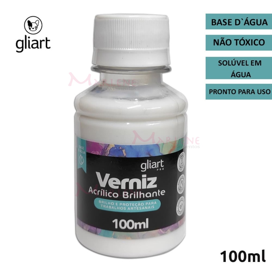 Detalhes: Verniz acrílico brilhante com 100ml Gliart